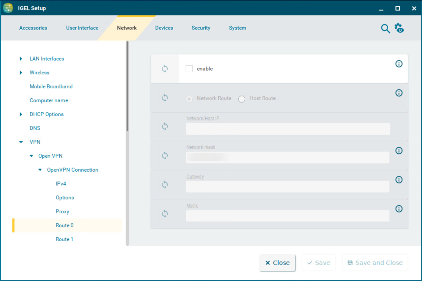 Network Route in IGEL OS 12