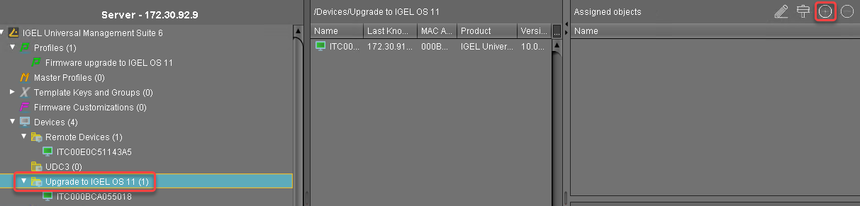 Select the directory and in the Assigned objects area, click