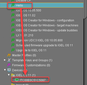 1. In the UMS structure tree, drag and drop the icon of your profile onto the icon of a device.