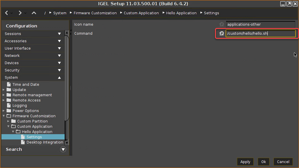 /custom/hello/hello.shas the Command.