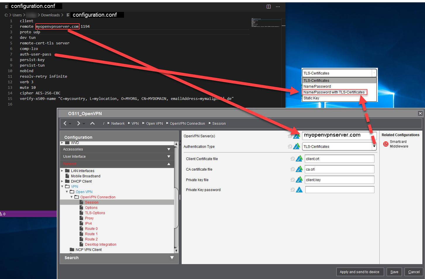 You can use the .ovpn or the .conf file from your firewall to configure OpenVPN for your IGEL OS device.