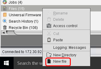 In the navigation tree, go to Files, open the context menu and choose New file.
