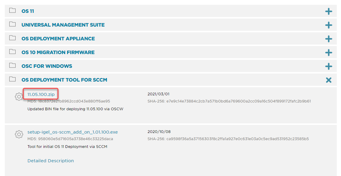 - Open a web browser, go to https://www.igel.com/software-downloads/workspace-edition/ > OS DEPLYOMENT TOOL FOR SCCM, download the current IGEL OS file, and unzip it.
