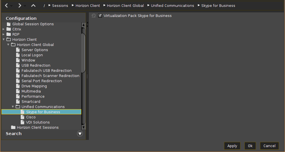 Menu path: Sessions > Horizon Client > Horizon Client Global > Unified Communications > VDI Solutions