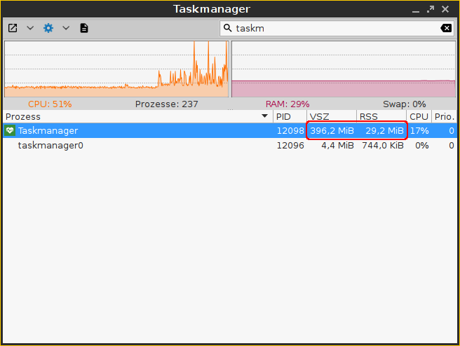 The Task Manager will now show only the relevant applications and processes.Read the values in the VSZ and RSS columns.