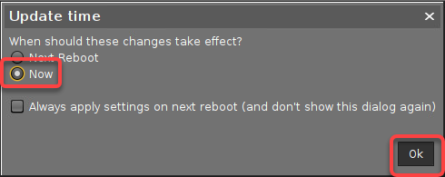 In the confirmation dialog, select Now and click Ok.