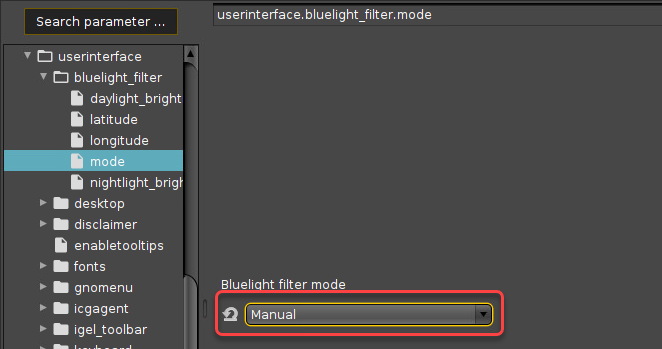 You can configure a blue light filter in your IGEL OS device to reduce your display's percentage of blue light display for nighttime use.