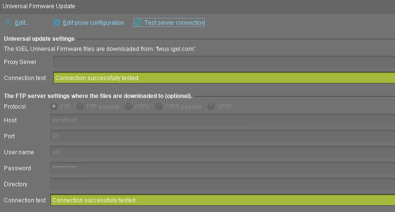 If everything went well, a success message is shown both for the IGEL download server and for the FTP server: