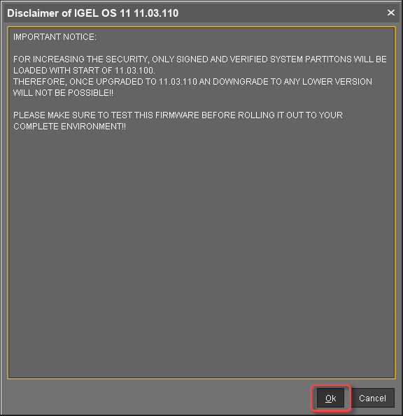 Read and confirm the disclaimer. (IGEL OS 11.03.100 or higher only)