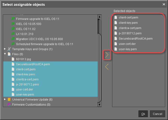 3. Under Files, select the file objects using the button: