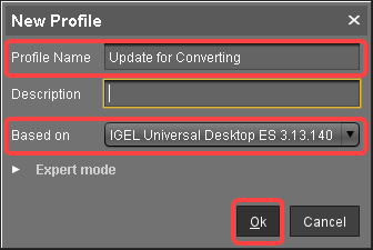 Profile Name: Name for the profile, e. g. "Update for Converting".