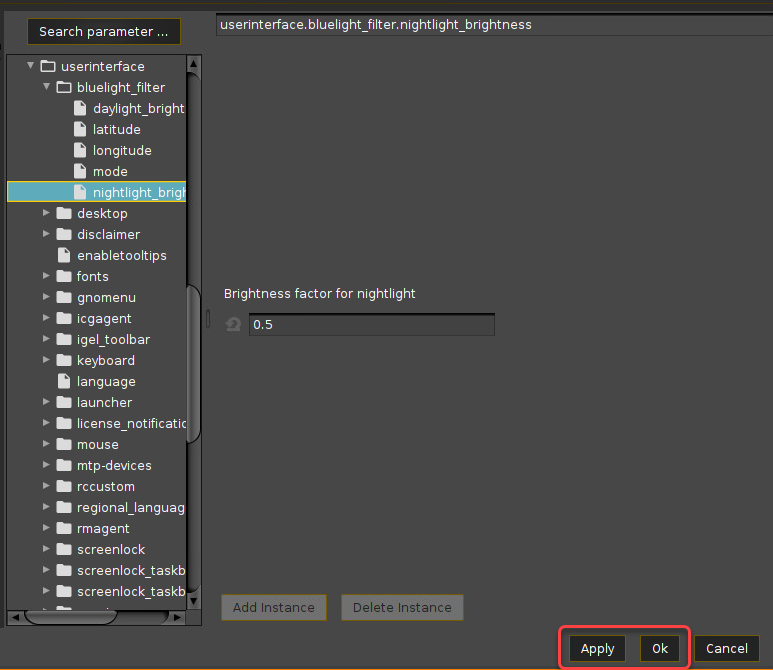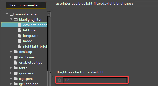 You can configure a blue light filter in your IGEL OS device to reduce your display's percentage of blue light display for nighttime use.