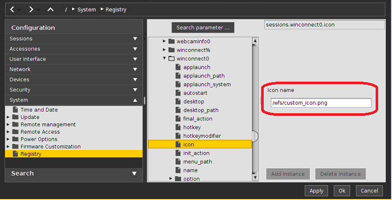 3. Enter under Icon name the absolute path to your custom icon as shown in the sample picture below.