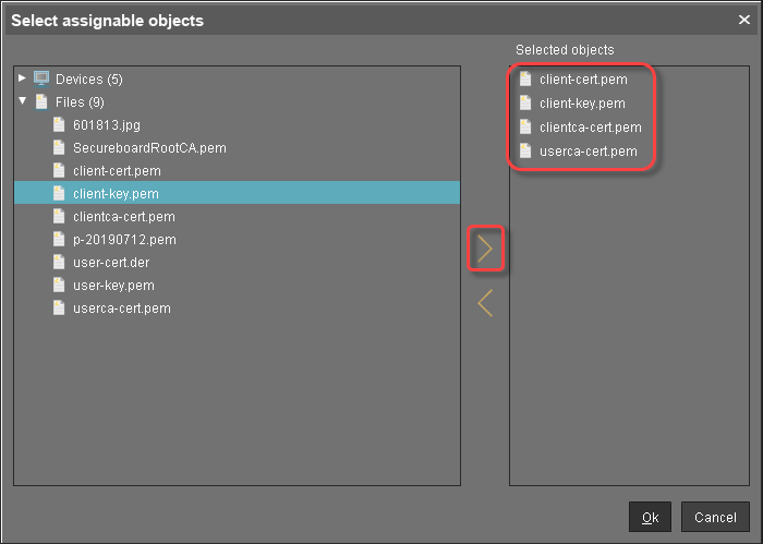 Under Files, select the file objects using the button: