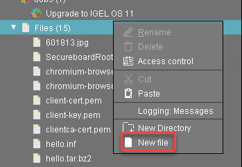 2. In the structure tree of the UMS Console, go to Files and select New file in the context menu.