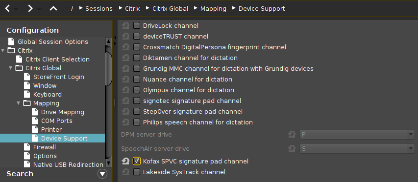 Go to Sessions > Citrix > Citrix Global > Mapping > Device Support.