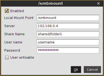 /smbmount)Server: The IP address, Fully-Qualified Domain Name (FQDN) or NetBIOS name of the server.