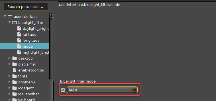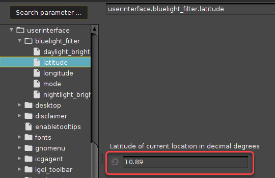 You can configure a blue light filter in your IGEL OS device to reduce your display's percentage of blue light display for nighttime use.