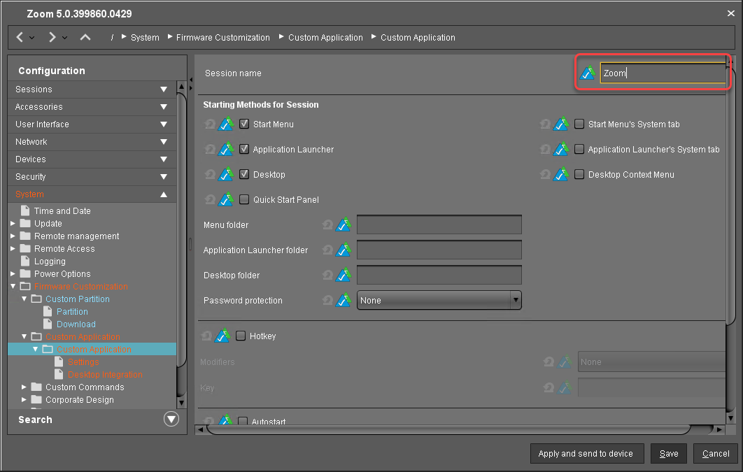 The Desktop Integration page opens.Enter "Zoom" as the Session name.