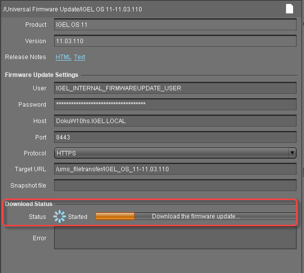 The firmware is transferred to the FTP server. In the main window, you can monitor the download process.