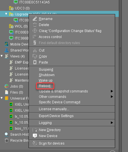 When all devices have been upgraded successfully, remove the "Firmware upgrade to IGEL OS 11" profile and the two Universal Firmware Updates from the directory.