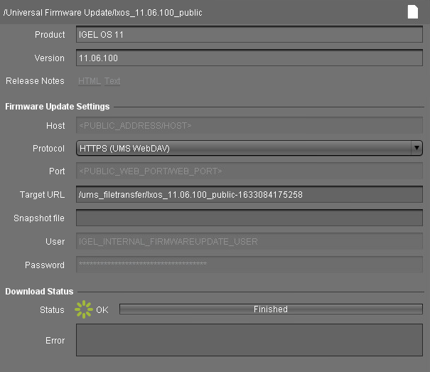 lxos_11.06.100_public.zip) can be accessed from the machine that hosts the UMS Console (via local file or network drive).In the structure tree of the UMS Console, go to Universal Firmware Update and select Firmware archive (zip file) -> Universal Firmware Update.