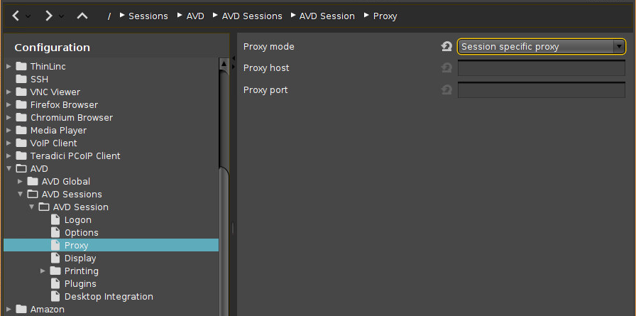 In the following area, you can configure proxy settings for your AVD sessions in IGEL OS.