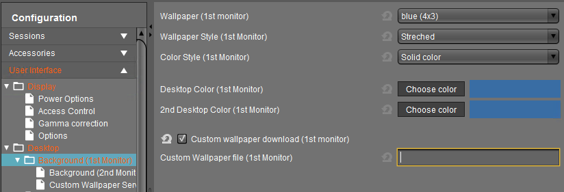 ->Click User Interface > Desktop > Background in the structure tree of the setup.