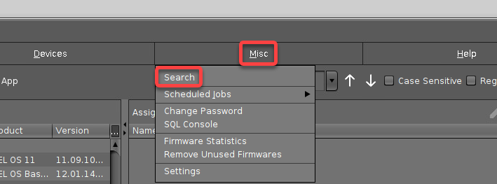In the UMS Console, click Misc in the menu bar and then select Search.