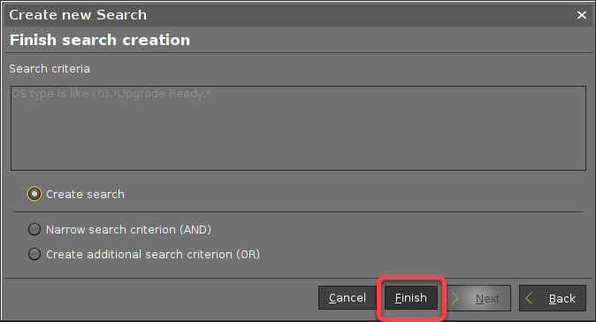 We will create a search that covers all devices on which the upgradeability test has been passed. Afterward, we create a scheduled job that issues the upgrade command to all these devices.