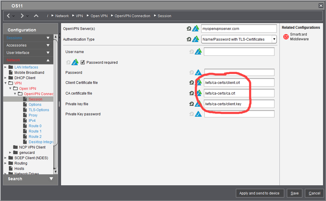 In the UMS, open the profile you have created for your OpenVPN connection and go to Network > VPN > Open VPN > [your OpenVPN connection] > Session.