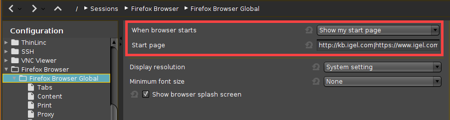 Open the IGEL Setup and go to Sessions > Firefox Browser > Firefox Browser Global.