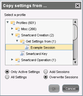 4. Choose your profile from the folder "Smartcard Creation" > "Get settings from".