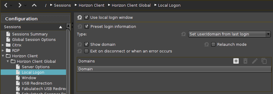 Menu path: Sessions > Horizon Client > Horizon Client Global > Local Logon