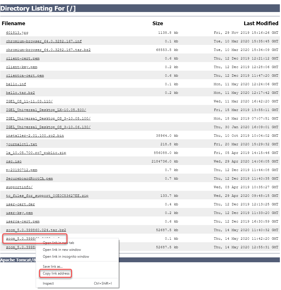 You will see a directory listing of the files that can be downloaded from the UMS.Right-click the zoom_[version].inf entry and select Copy link address (or the like, depending on your browser).