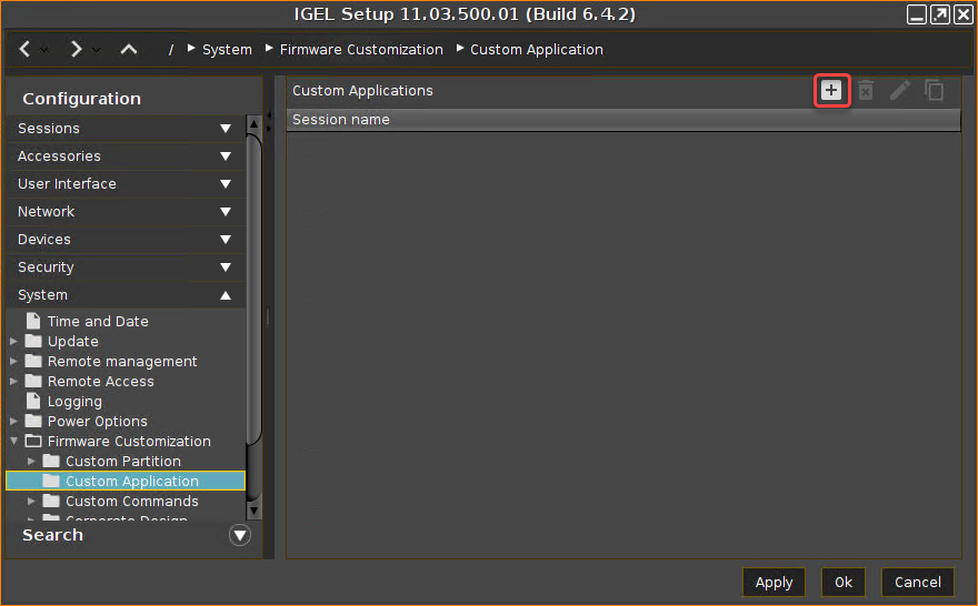 In the Custom Applications list, click