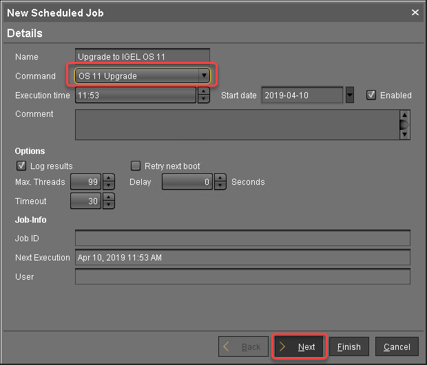 Under Name, enter a suitable name for the job, e. g. "Upgrade to IGEL OS 11".