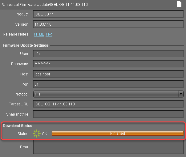 When the status is Finished, your Universal Firmware Update is ready for use.