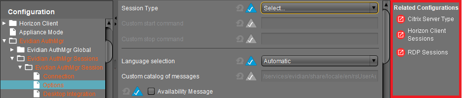 ->Configure the session that you want to use with Evidian Authentication Manager as the first session of its kind. The shortcuts to the session settings are provided in the Setup section Related Configurations: