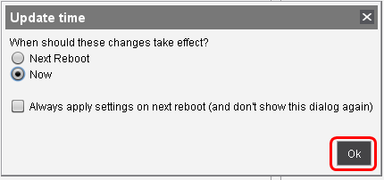In the Update time dialog, choose whether the file should be assigned to the thin clients at next reboot or immediately; then, click Ok.