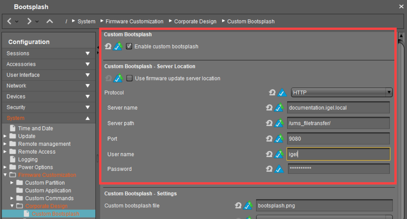 In the profile configuration window, go to System > Firmware Customization > Corporate Design > Custom Bootsplash to create your own bootsplash.