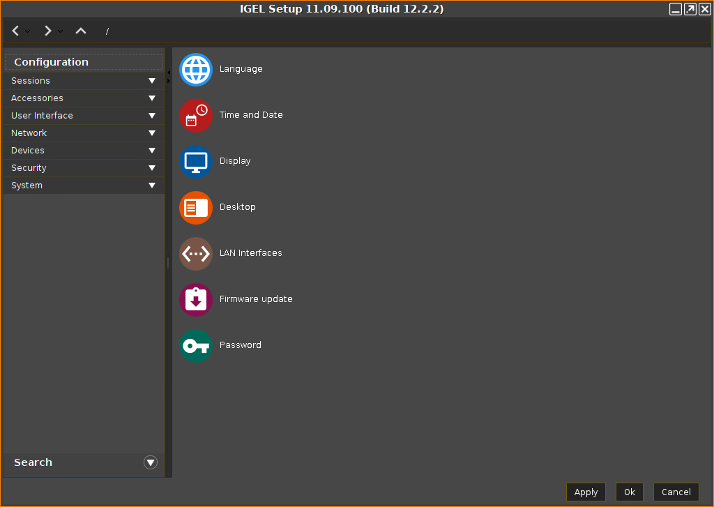 The IGEL Setup opens, enabling you to change the settings in the same way as with a regular IGEL OS installation. The changes are stored on the USB memory stick from which the IGEL OS Creator (OSC) is executed. For details about the settings, see the chapters Setup and the subsequent chapters in the IGEL OS Reference Manual.