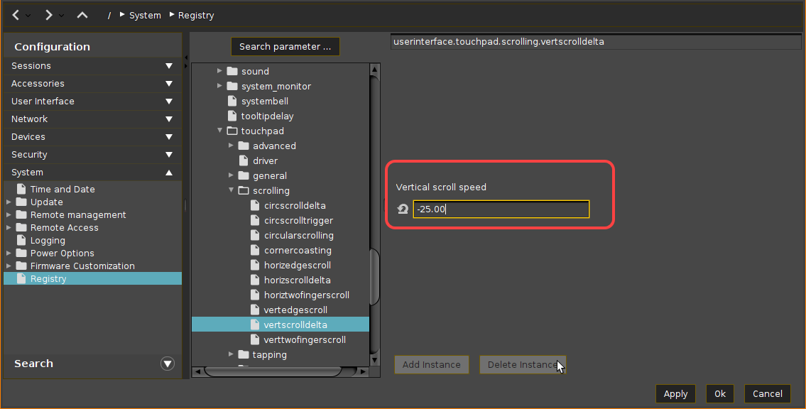 To enable the reverse scrolling direction, change the value to the negative one. (Example: -25.00)