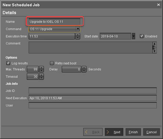 Under Name, enter a suitable name for the job, e. g. "Upgrade to IGEL OS 11".