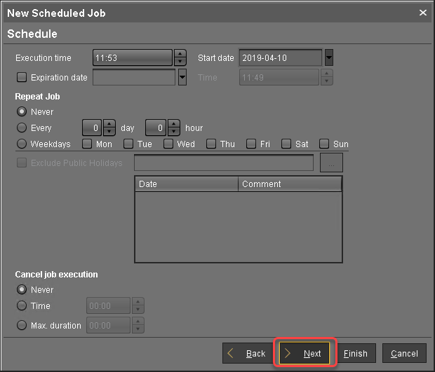 Under Execution time and Start date, set the time at which the upgrade should be executed, and click Next.