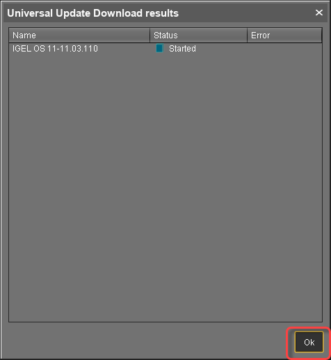 When the status is Finished, your Universal Firmware Update is ready for use.