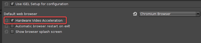 ->If you want to use hardware video acceleration with the Chromium browser, make sure that Sessions > Chromium Browser > Chromium Browser Global > parameter Hardware Video Acceleration is enabled (enabled by default),