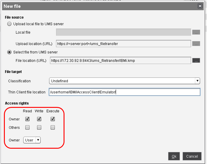 In the Update time dialog, choose whether the file should be assigned to the thin clients at next reboot or immediately; then, click Ok.