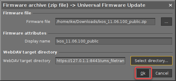 lxos_11.06.100_public.zip) can be accessed from the machine that hosts the UMS Console (via local file or network drive).In the structure tree of the UMS Console, go to Universal Firmware Update and select Firmware archive (zip file) -> Universal Firmware Update.