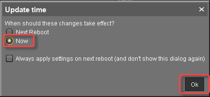 In the Update time dialog, select Now and click Ok.